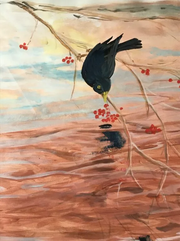 Jag målar i olja, på canvasduk, ofta på beställning från något färgval eller foto från kunden. Den teknik jag använder är densamma som vid ådring och marmorering, dvs blandat med krita och linolja, för att få en fernissa ( yta ) på måleriet. Jag väljer oljefärger för att det torkar långsamt och att man kan måla olika lager för att få djup och effekt i tunna lager. Jag tycker om den långsamma processen och en tavla tar ca 4-6 veckor innan jag är nöjd.