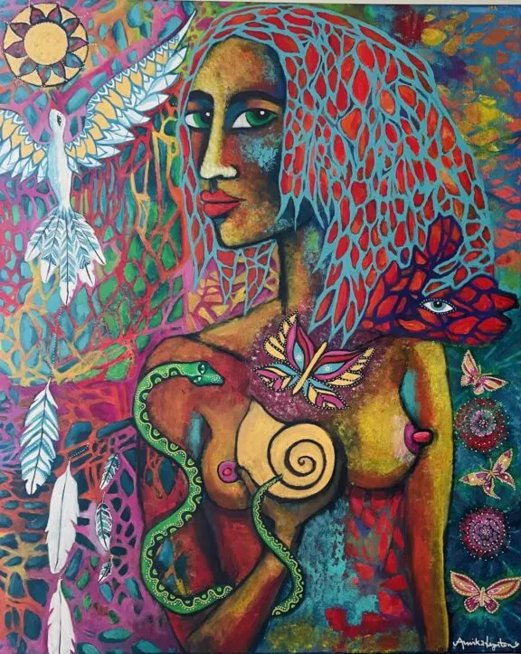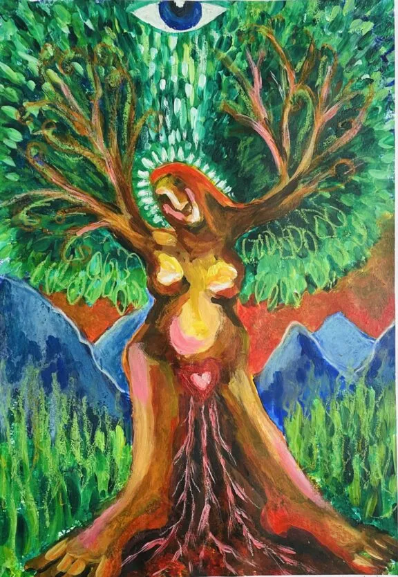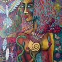 Jag har skapat kreativt sedan barnsben. Jag blandar olika material såsom måleri, keramik & glas. Mina målningar är skapade i akryl & akvarell. Min största inspiration kommer från mina möten med Moder Jord & hennes skönhet. Mina bilder kommer till mig genom mina drömmar & meditationer. Ofta kommer oxå poetiska texter till bilderna. Att skapa kreativt är mitt sätt att vara i kontakt med min själs språk & uttryck.