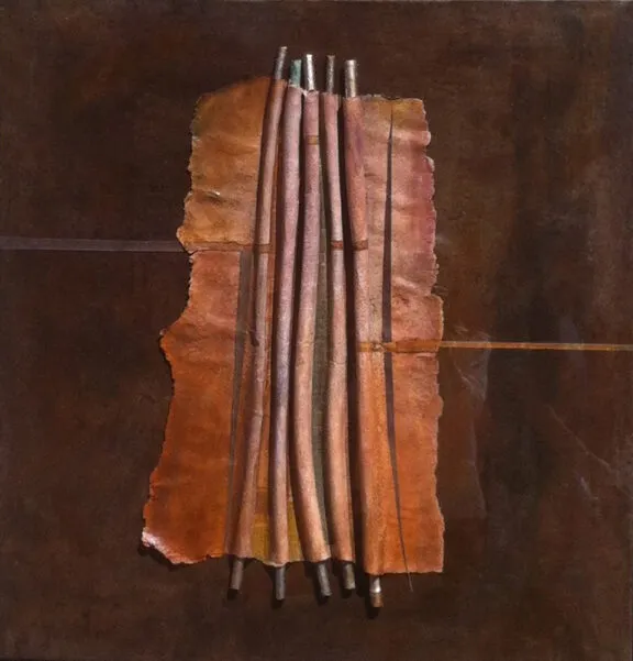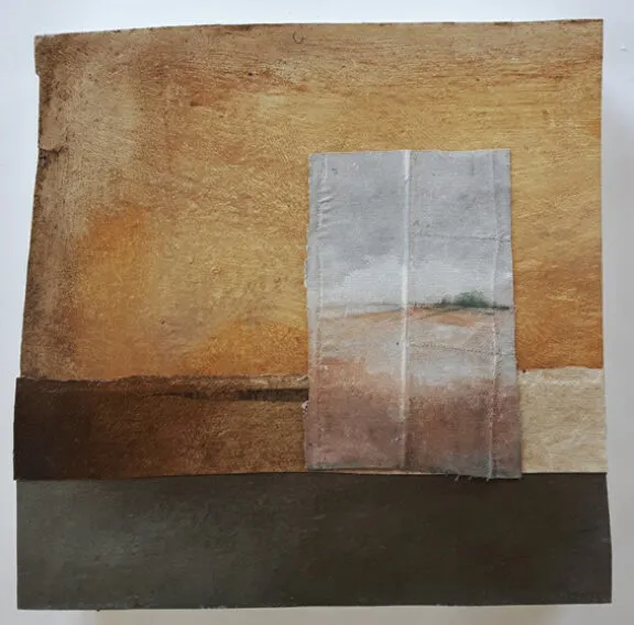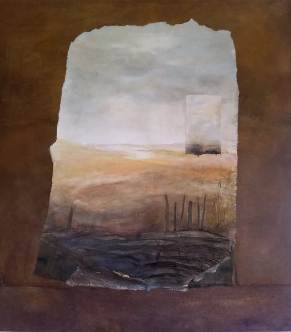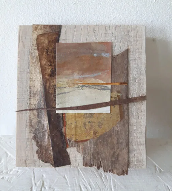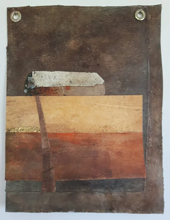 ”Olja, akvarell, collage, metall, handgjort papper – ett möte