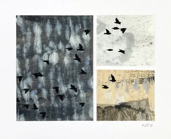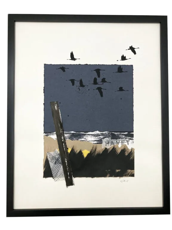 I min ateljé arbetar jag med screentryck – framför allt på papper. Ibland blir det unika verk, ibland små serier. Förutom de många möjligheter som screentrycket ger, lockas jag särskilt av att experimentera och kombinera med andra tekniker. Mixed media, collage, tusch och samspelet mellan olika material är en självklar del av mitt skapande. Jag arbetar också med fotografi. Just nu experimenterar jag med att förena fotografi och screentryck på olika sätt.