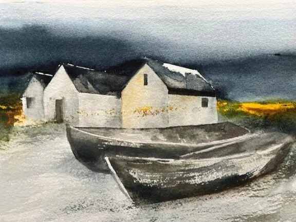 Jag målar akvarell. Mina motiv finner jag i det som omger mig. Några hus, klippor, strandängar, figurer eller varför inte ett uttryck i ett ansikte. Att följa pigmentens rörelse över det våta pappret slutar aldrig att fascinera mig.