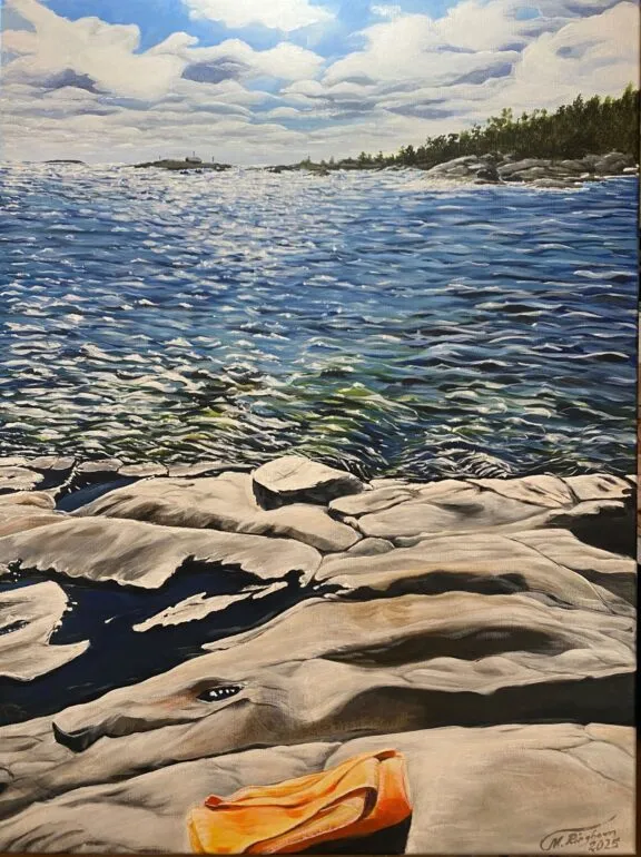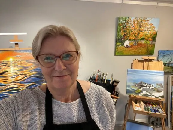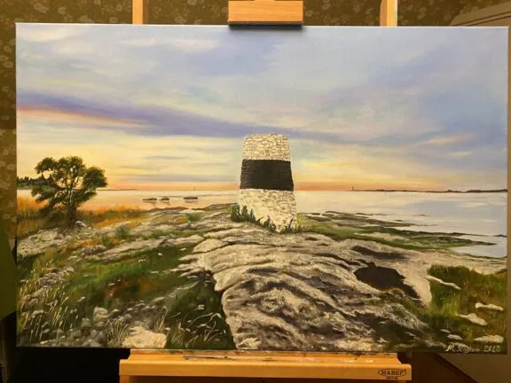 Marja målar i olja och akryl. Oftast är det naturen som inspirerar till skapandet av hennes verk. Det karga landskapet, det speciella ljuset, havet och alla vackra växter slutar aldrig att fascinera. Glädjen och välmåendet det ger att få skapa konst utifrån de nära omgivningarna har nästan blivit ett måste i tillvaron. Hon hoppas att det återskapas i hennes verk.